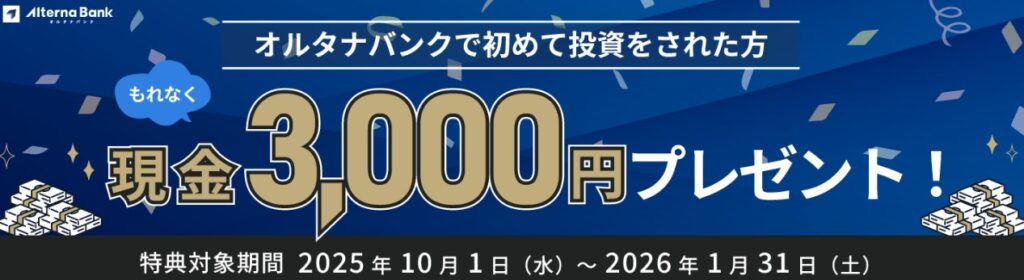対象者 | 上記特典期間内に、オルタナバンクに初めて投資された方 |