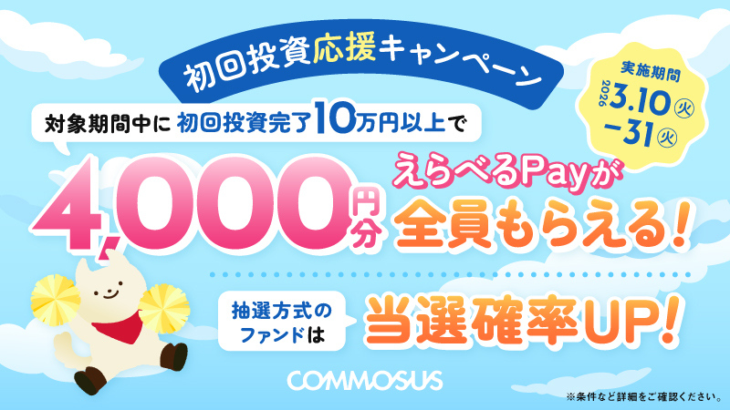 現在COMMOSUSでは、初回投資応援キャンペーンが開催されています。