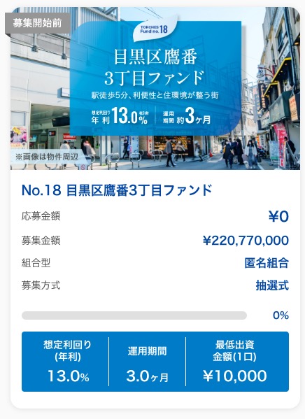 2月13日(金)12時に募集スタートする「目黒区鷹番3丁目ファンド」は、1万円から出資できるファンドです。