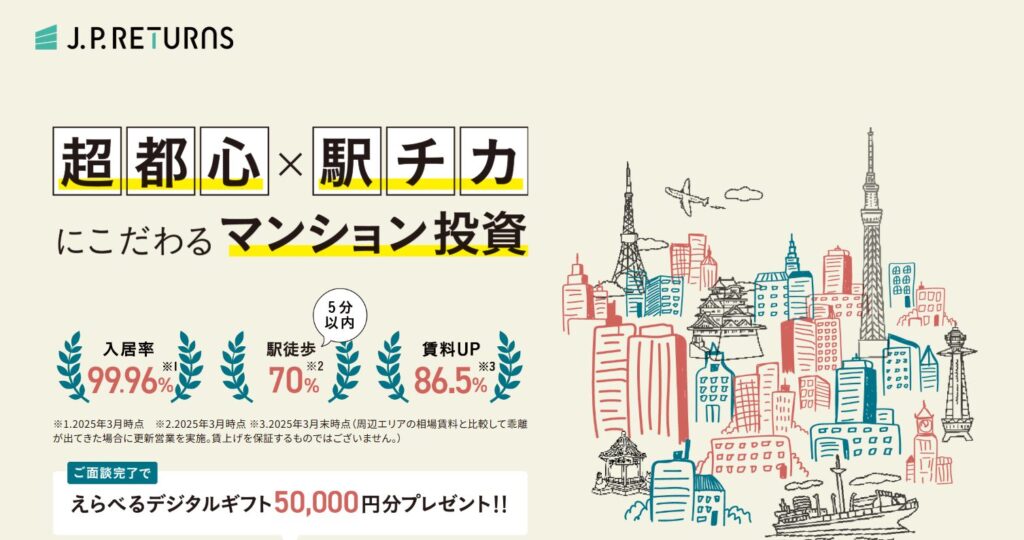 JPリターンズは、2002年の創業以来、東京都心を中心とした中古ワンルームマンションを扱う不動産投資会社です。