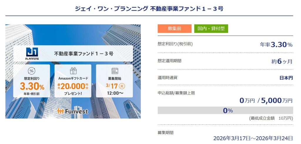 ジェイ・ワン・プランニング 不動産事業ファンド1-3号