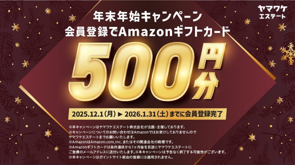 ヤマワケエステートのキャンペーンの詳細は下記の記事をチェックしてください。