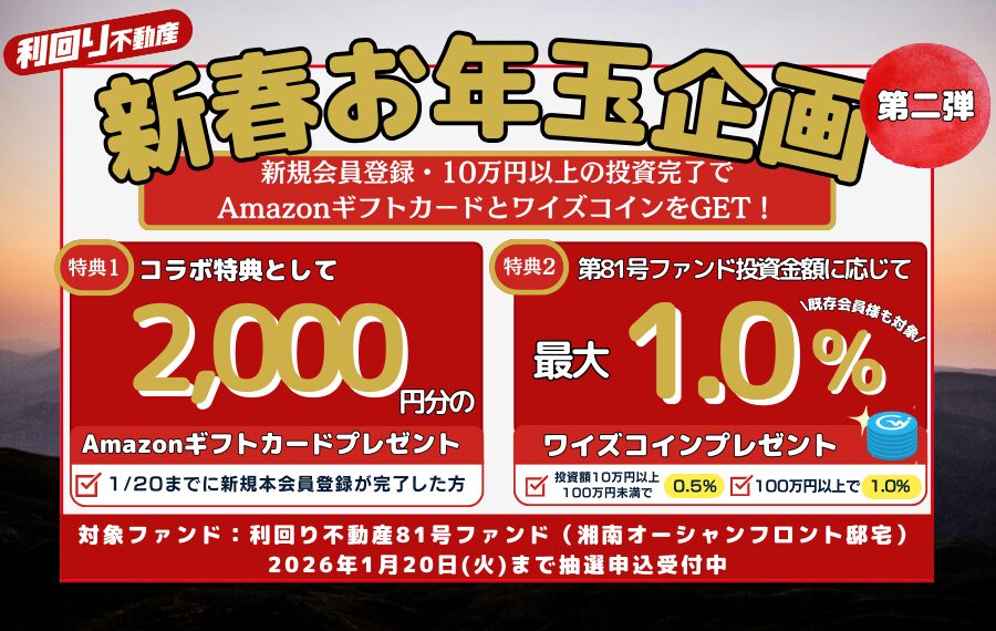 この記事では、【利回り不動産】の2026年お年玉キャンペーンと81号ファンドの概要についてまとめました。