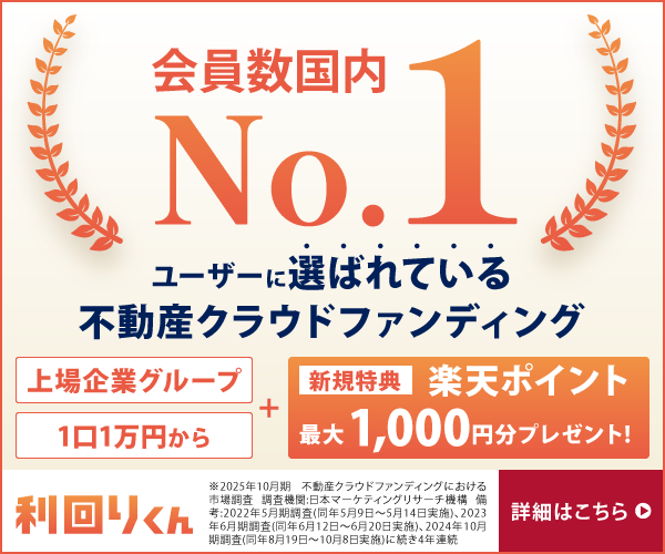 | 利回りくん | 登録で楽天ポイント50円分 投資でさらに950円分 |