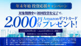 | 概要 | 対象期間中に初回投資完了で「Amazonギフトカード 2,000円分」プレゼント |
