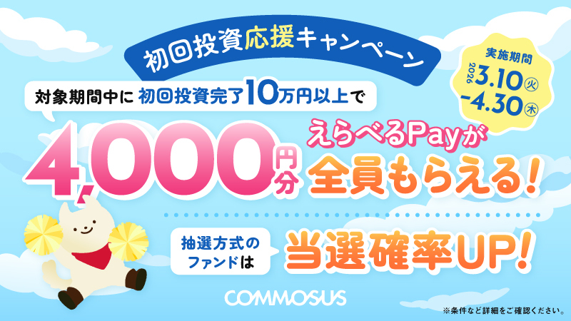 現在COMMOSUSでは、初回投資応援キャンペーンが開催されています。