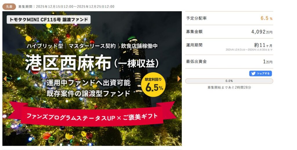 ✅️対象ファンド:トモタクCF115号(西麻布)譲渡ファンド