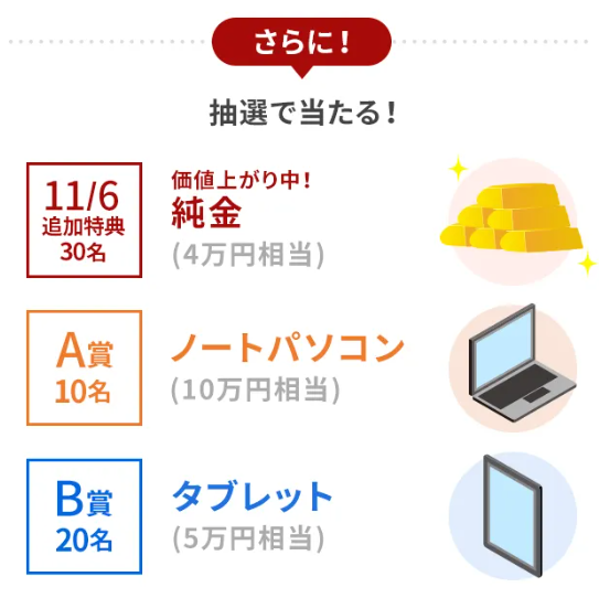 このキャンペーンは11月9日(日)までとなっており、早期に終了する場合もあるため、今のうちに登録することをおすすめします。