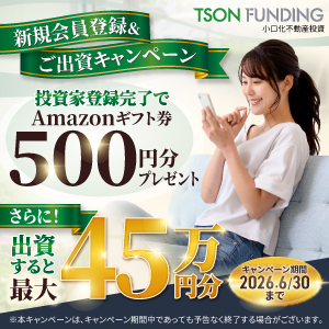 | TSON FUNDING | 登録でアマギフ500円分 6月30日まで |
