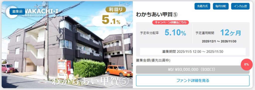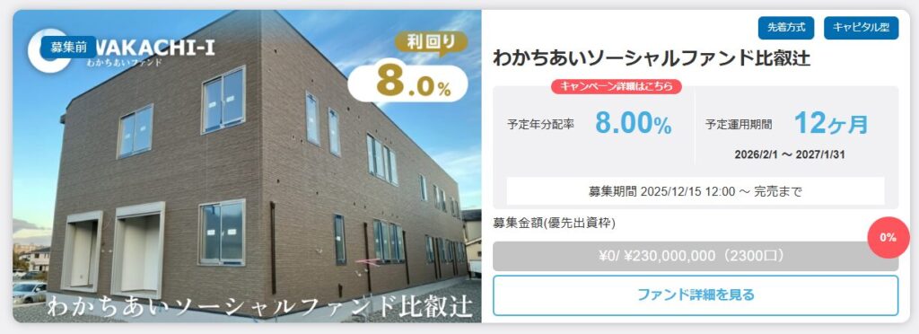 2019年10月には不動産投資型クラウドファンディング「わかちあいファンド」をスタートしました。